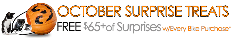 FREE Treats Deal applies to all bikes sold and shipped in October. It's a Great time to buy any bike.